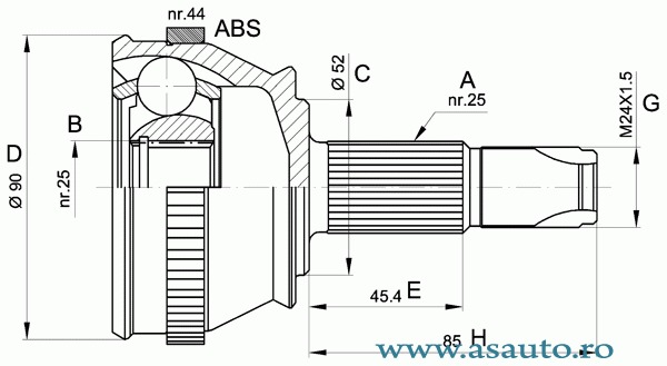 Numar dinti , inel ABS