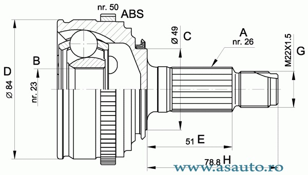 Numar dinti , inel ABS