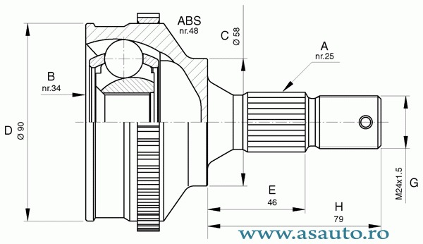 Numar dinti , inel ABS