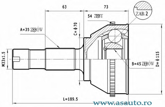 Numar dinti , inel ABS