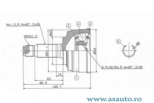 Numar dinti , inel ABS
