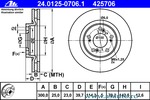 Numar gauri 5 Tip disc frâna ventilat Grosime minima [mm] 23 mm Diametru [mm] 300 mm Diametru de centrare [mm] 70,2 mm Înaltime [mm] 39,7 mm Partea de montare punte fata