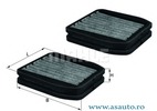 Pâna în an fabricatie 07/2004 Echipament vehicul pt.masini cu clima automata in 2 zone Lungime [mm] 185 mm Latime [mm] 212 mm Lungime 1 [mm] 185 mm Latime 1 [mm] 212 mm Înaltime [mm] 40 mm Tip filtru Filtru carbon activ Unitate de calitate set