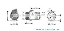 Tip cutie viteza cv. manuala Fulie curea -? [mm] 105 mm Capacitate Compresor 121 cmc Tensiune de la [V] 12 V Numar de striatii 6 Ulei compresor PAG 46 Cantitate umplere ulei [ml] 145 ml Agent frigorific R 134a Numar poli 2 pol
