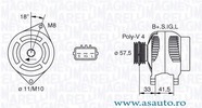Pâna în an fabricatie 12/2002 Curent electric vehicul pentru vehicule cu instalatie de 12V Tensiune [V] 12 V Curent de incarcare generator [A] 80 A Numar nervuri 4 Fulie curea -? [mm] 60 mm Lungime 2 [mm] 51 mm Lungime 1 [mm] 33 mm Alezaj-? 1 [mm] 11 mm Lungime 3 [mm] 42 mm Grosime 1 [mm] 18 mm