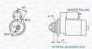 Pâna în an fabricatie 12/2002 Tensiune [V] 12 V Putere electromotor [kW] 0,8 kW Numarul gaurilor de fixare 2 Numarul gaurilor filetate 1 Diametru flansa [mm] 74 mm Lungime 1 [mm] 155 mm Lungime 2 [mm] 14 mm Directia de rotatie rotatie contrar acelor de ceasornic Lungime 3 [mm] 22 mm
