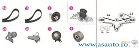 Agregate angrenate agregat antrenat:arbore cu came Articol extins/Info extins 2 cu amortizor, rola intinzatoare Articol extins/Info extins cu pompa apa