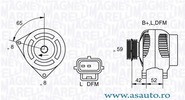 Tensiune [V] 12 V Amperaj [A] 70 A Directia de rotatie rotatie contrar acelor de ceasornic Articol extins/Info extins cu regulator integrat Conector/clema cu conector pentru turometru Numar nervuri 3 Role cu rola curea Diametru [mm] 60 mm