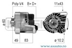 Curent electric vehicul pentru vehicule cu instalatie de 12V Tensiune [V] 12 V Curent de incarcare generator [A] 85 A Numar nervuri 4 Fulie curea -? [mm] 60 mm Lungime 2 [mm] 45 mm Lungime 1 [mm] 45 mm Alezaj-? 1 [mm] 12 mm Grosime 1 [mm] 32 mm