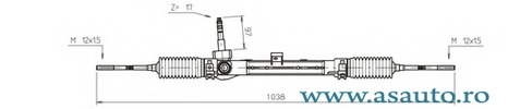 Echipament vehicul pentru autovehicule cu servodirectie asistata electric Mod de operare manual Vehicul cu volan pe stânga/dreapta pentru vehicule cu volan pe stanga Directie cremaliera directia dintata Lungime totala [mm] 1027 mm inalt. arbore de intrare (mm) 94 mm nr. dinti arbore de intrare 17 diam. arbore de intrare (mm) 14,2 mm lungime bieleta (mm) 160 mm