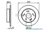 Partea de montare puntea spate Echipament vehicul pentru vehicule cu pachet sport Tip disc frâna plin Diametru [mm] 260 mm Grosime minima [mm] 8 mm Numar gauri 5 Înaltime [mm] 48,5 mm Diametru de centrare [mm] 64,2 mm Diametru asezare gauri -? [mm] 114,3 mm