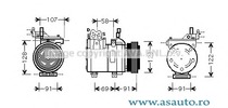 Fulie curea -? [mm] 112 mm Tensiune de la [V] 12 V Numar de striatii 4 Ulei compresor PAG 46 Cantitate umplere ulei [ml] 160 ml Agent frigorific R 134a Numar poli 1 pol Capacitate Compresor 155 cmc