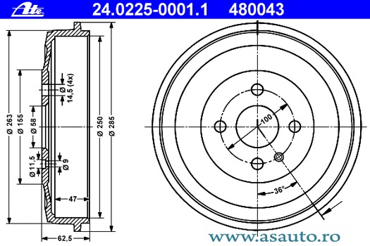 Diametru exterior tambur frana [mm]