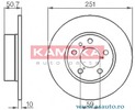 Partea de montare puntea spate Înaltime [mm] 50,5 mm Grosime [mm] 10 mm Greutate (în kg) 7.290 kg Diametru butuc roata [mm] 59 mm Diametru [mm] 251 mm Grosime minima [mm] 9 mm