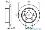Partea de montare puntea spate Înaltime [mm] 87,5 mm Grosime [mm] 20 mm Greutate (în kg) 18.210 kg Diametru asezare gauri -? [mm] 139,7 mm Diametru butuc roata [mm] 96,3 mm Diametru [mm] 315 mm Grosime minima [mm] 18 mm