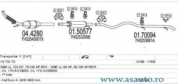 VW TRANSPORTER T5 platou / sasiu (7JD, 7JE, 7JL, 7JY, 7JZ, 7FD, 1.9 TDI