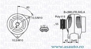 Pâna în an fabricatie 01/2008 utilizabil pentru vehicule cu alternator 120 A Tensiune [V] 14 V Curent de incarcare generator [A] 120 A Fulie curea -? [mm] 54 mm Role cu rola curea cu cuplaj unisens