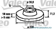 Partea de montare puntea spate Tip disc frâna plin Diametru exterior 226 mm Diametru interior [mm] 39,8 mm Înaltime [mm] 71,2 mm Grosime minima [mm] 8 mm Numar gauri 5