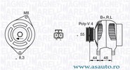 Tensiune [V] 12 V Amperaj [A] 70 A Directia de rotatie rotatie contrar acelor de ceasornic Articol extins/Info extins cu regulator integrat Conector/clema fara conector pentru turometru Numar nervuri 4 Role cu rola curea Diametru [mm] 60 mm