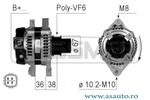 Curent electric vehicul pentru vehicule cu instalatie de 12V Tensiune [V] 14 V Curent de incarcare generator [A] 80 A Role cu fulie combinata Fulie curea -? [mm] 60 mm Numar nervuri 6 Lungime 1 [mm] 30 mm Lungime 2 [mm] 42 mm Lungime 3 [mm] 37 mm Grosime 1 [mm] 19 mm Alezaj-? 2 [mm] 10 mm