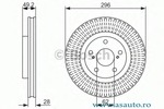Partea de montare punte fata Tip disc frâna ventilat interior Diametru [mm] 296 mm Grosime minima [mm] 26 mm Înaltime [mm] 50 mm Alezaj butuc -? [mm] 62 mm
