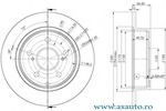 Partea de montare puntea spate Diametru [mm] 281 mm Înaltime [mm] 55,1 mm Tip disc frâna plin Grosime minima [mm] 10,5 mm Diametru de centrare [mm] 62 mm Suprafata acoperit (cu un strat protector) Janta, numar gauri 5 -gaura