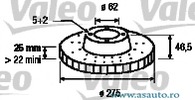 Numar gauri 5 Tip disc frâna ventilat Grosime minima [mm] 22 mm Diametru [mm] 275 mm Diametru de centrare [mm] 62 mm Înaltime [mm] 46,3 mm Partea de montare punte fata