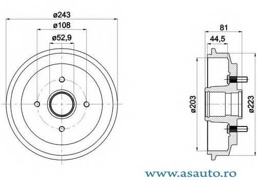 Inaltime tot. tambur frana