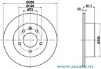 Partea de montare puntea spate Dinamica frânare/conducere pentru vehicule fara ABS Tip disc frâna plin Diametru [mm] 284 mm Diametru asezare gauri -? [mm] 75 mm Numar gauri 5 Înaltime [mm] 61 mm Grosime minima [mm] 9 mm