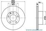 Partea de montare punte fata Tip disc frâna ventilat Diametru [mm] 284 mm Grosime minima [mm] 20,4 mm Înaltime [mm] 76 mm Alezaj-? [mm] 79 mm Numar gauri 5