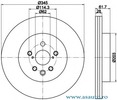 Partea de montare puntea spate Numar gauri 5 Tip disc frâna ventilat interior Diametru de centrare [mm] 62 mm Diametru [mm] 345 mm Înaltime [mm] 61,7 mm Grosime minima [mm] 26 mm