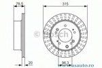 Pâna în an fabricatie 08/2009 Partea de montare puntea spate Diametru de centrare [mm] 96,3 mm Grosime minima [mm] 18,4 mm Tip disc frâna ventilat interior Înaltime [mm] 78,5 mm Diametru [mm] 315 mm Numar gauri 5
