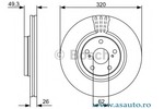 Partea de montare punte fata Tip disc frâna ventilat interior Diametru [mm] 320 mm Grosime minima [mm] 24 mm Înaltime [mm] 49,3 mm Alezaj butuc -? [mm] 62 mm