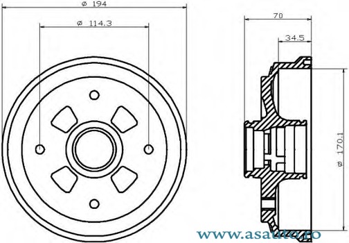 Inaltime tot. tambur frana