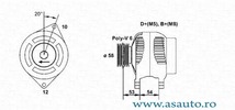 incepand cu an fabricatie 01/1998 Tensiune [V] 14 V Curent de incarcare generator [A] 120 A Fulie curea -? [mm] 62 mm Role cu rola curea cu cuplaj unisens