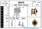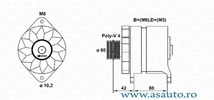 Tensiune [V] 14 V Curent de incarcare generator [A] 80 A Directia de rotatie rotatie contrar acelor de ceasornic Fulie curea -? [mm] 67 mm Numar nervuri 6