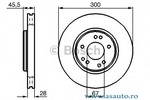 Partea de montare punte fata Diametru [mm] 300 mm Înaltime [mm] 45,5 mm Tip disc frâna ventilat Grosime minima [mm] 25,4 mm Diametru de centrare [mm] 67 mm Janta, numar gauri 5 -gaura