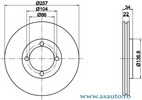 Partea de montare punte fata Tip disc frâna ventilat interior Diametru [mm] 257 mm Grosime minima [mm] 20 mm Diametru asezare gauri -? [mm] 104 mm Înaltime [mm] 34 mm Alezaj butuc -? [mm] 86 mm