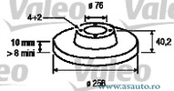Partea de montare puntea spate Diametru [mm] 258 mm Tip disc frâna plin Grosime minima [mm] 8 mm Numar gauri 4 Diametru de centrare [mm] 76 mm Specificatii de asamblare insurubat Adâncime (mm) 40,4 mm