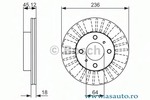 Tip disc frâna ventilat Numar gauri 4 Grosime minima [mm] 16,4 mm Diametru [mm] 236 mm Diametru de centrare [mm] 64 mm Înaltime [mm] 45 mm Partea de montare punte fata