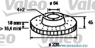 Partea de montare punte fata Tip disc frâna ventilat Diametru [mm] 236 mm Diametru asezare gauri -? [mm] 64 mm Numar gauri 4 Înaltime [mm] 45 mm Grosime minima [mm] 16,4 mm