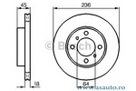 Partea de montare punte fata Tip disc frâna ventilat Diametru [mm] 236 mm Grosime minima [mm] 17 mm Înaltime [mm] 45 mm Alezaj-? [mm] 64 mm Numar gauri 4