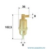 Lungime [mm] 36 mm Înaltime [mm] 103 mm Greutate (în kg) 0,03 kg Diametru interior [mm] 8 mm Articol extins/Info extins 2 cu filtru prefiltrare Diametru exterior 1 [mm] 8 mm