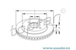 Partea de montare puntea spate Dinamica frânare/conducere pentru vehicule cu ABS Tip disc frâna ventilat Diametru [mm] 253 mm Numar gauri 4 Înaltime [mm] 43,7 mm Diametru de centrare [mm] 63,5 mm Grosime minima [mm] 18 mm