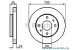 incepand cu an fabricatie 03/1999 Partea de montare punte fata Tip disc frâna ventilat interior Diametru exterior 256 mm Grosime [mm] 24 mm Grosime minima [mm] 22,4 mm Înaltime [mm] 45 mm Diametru asezare gauri -? 1 [mm] 114,3 mm Alezaj butuc -? [mm] 69 mm