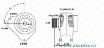 incepand cu an fabricatie 01/1998 Curent electric vehicul pentru vehicule cu instalatie de 12V Tensiune [V] 14 V Curent de incarcare generator [A] 90 A Role cu rola curea cu cuplaj unisens Numar nervuri 6 Fulie curea -? [mm] 56 mm Lungime 2 [mm] 39 mm Lungime 1 [mm] 39,5 mm Alezaj-? 1 [mm] 8 mm Lungime 3 [mm] 61 mm Grosime 1 [mm] 14 mm
