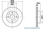 Diametru exterior 238 mm Tip disc frâna ventilat Înaltime [mm] 48,2 mm Numar gauri 4 Diametru asezare gauri -? [mm] 100 mm Grosime minima [mm] 17 mm Diametru de centrare [mm] 54,1 mm Partea de montare punte fata