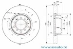 Partea de montare puntea spate Înaltime [mm] 69,5 mm Grosime [mm] 10 mm Greutate (în kg) 4.650 kg Diametru butuc roata [mm] 67 mm Diametru [mm] 279 mm Grosime minima [mm] 8,3 mm