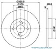 Partea de montare puntea spate Diametru [mm] 265,9 mm Grosime minima [mm] 8 mm Înaltime [mm] 36,3 mm Diametru de centrare [mm] 55 mm Numar gauri 4 Tip disc frâna plin Greutate (în kg) 3,425 kg