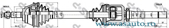 Tip cutie viteza cv. manuala Partea de montare Axa fata dreapta Dinti exteriori, spre roata 23 Dinti exteriori, spre diferential 39 Lungime [mm] 987 mm Diametru articulatie la roata [mm] 97 mm Diametru articulatie la cutia de viteza [mm] 91 mm